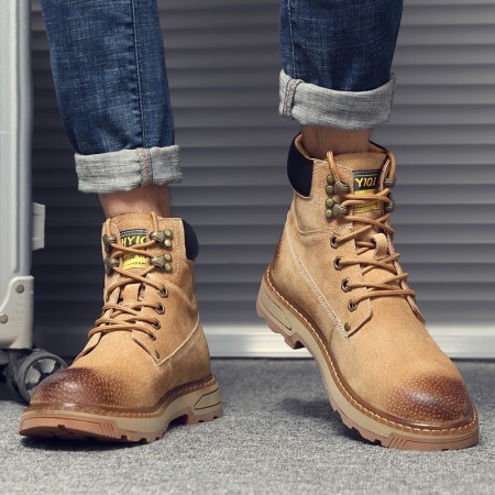 Martin Boots Men's British Style Tooling Boots Mens Autumn Trend High-Top Shoes Casual Breathable Short Boots