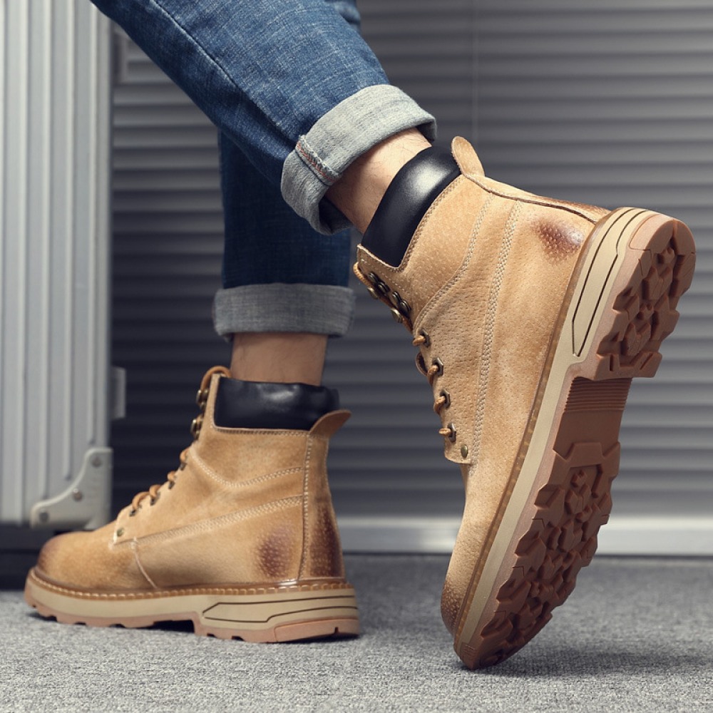 Martin Boots Men's Autumn New Leather Boots Casual Mid-Cut Tooling Boots High-Top Mens Shoes