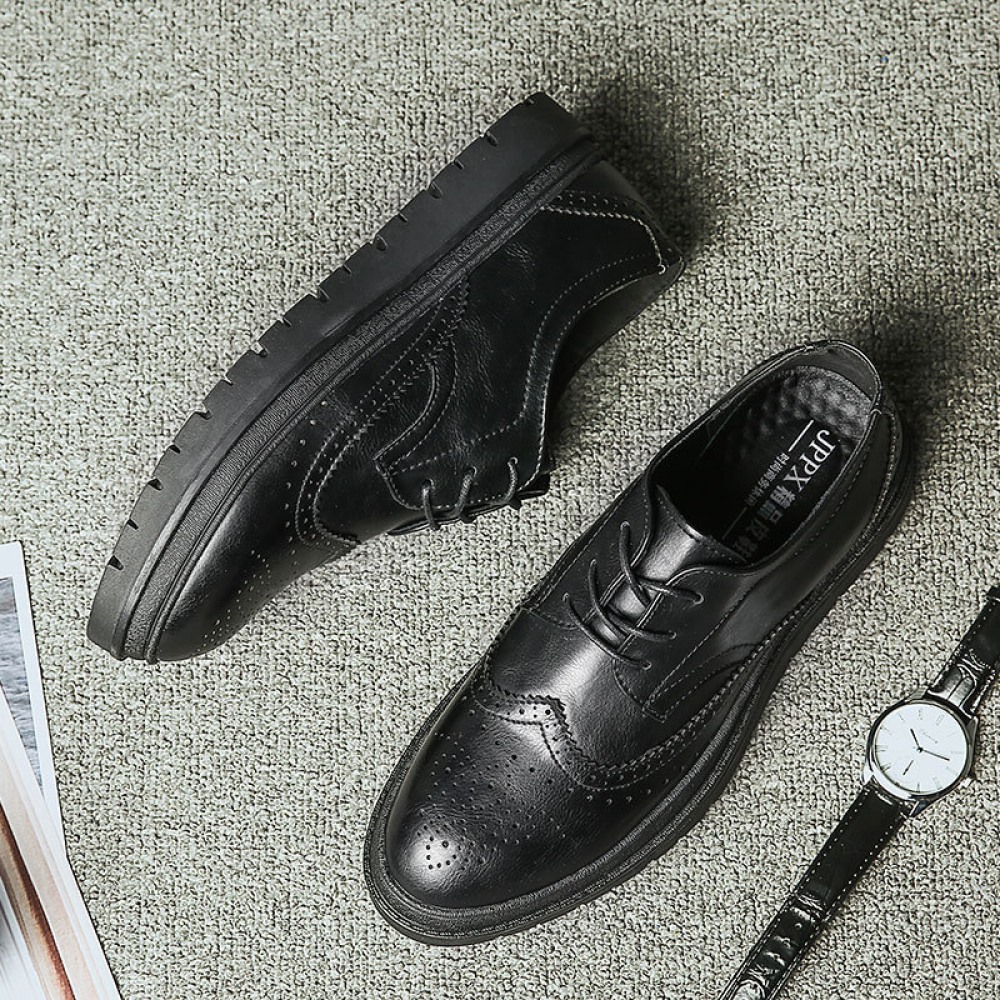 Black Men's Small Leather Shoes Mens Trend Casual Leather Breathable Shoes