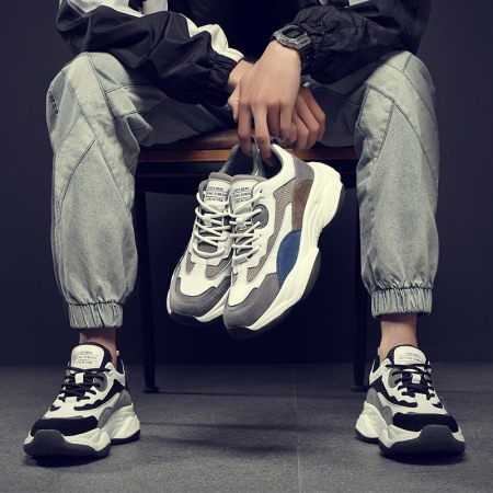 Thick-Soled Men's Shoes Summer Breathable Soft Mesh Sports Casual Shoes Trendy Colorful Men